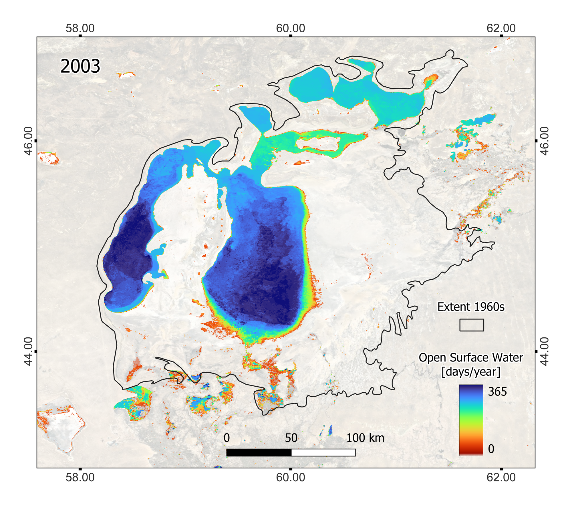 Rückgang des Aralsees Stand 2003