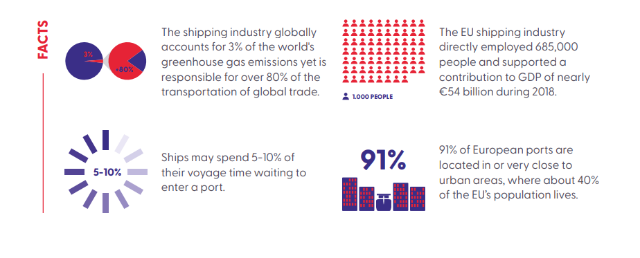 Der Seeverkehr macht über 80 % des Welthandels aus. Die EU beherbergt dabei die größte Schiffsflotte der Welt. Die europäische Schifffahrtsindustrie steht jedoch oft vor der Herausforderung, dass Schiffe bei Ankunft einen überfüllten Hafen vorfinden und die Anweisung erhalten, entweder außerhalb des Hafens zu warten oder zu ankern, bis Hafendienste und ein Liegeplatz verfügbar sind. Die meisten Häfen bedienen die Schiffe nach dem Windhundprinzip, was zu Ineffizienz und negativen Umweltauswirkungen führt. Darüber hinaus führt dies zu einer unausgewogenen Auslastung der Hafenressourcen mit hohen Spitzenwerten, die zu schweren Überlastungen und Staus führen, die sich auf die gesamte Branche auswirken.