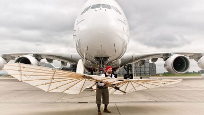 Auch einige andere Erfinder unternahmen damals Flugversuche. Doch keiner von ihnen hat es so weit gebracht wie Lilienthal. Einen wollen wir hier aber doch noch erwähnen: nämlich den „Schneider von Ulm“. Eigentlich hieß er Albrecht Berblinger, geboren 1770. Von Beruf Schneider, entwickelte und konstruierte er nebenbei ganz andere Dinge: unter anderem die erste bewegliche Beinprothese der Welt – und eben auch einen Hängegleiter. Dass er damit bei einer Flugvorführung – viele Jahrzehnte vor Lilienthal – in die Donau stürzte, brachte ihm viel Spott ein. Tatsächlich aber war auch sein Gleiter wohl schon flugfähig. Berblinger hatte nur Pech, weil die Luftverhältnisse über Flüssen immer etwas ungünstig sind. Irgendwie schade, dass Menschen wie Berblinger und Lilienthal nicht mehr erlebt haben, was aus ihren kühnen Visionen geworden ist …