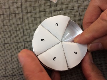 Die Meteoritenstücke und auch andere Mini-Objekte in die Metallzylinder verpacken – kein Problem. Die Döschen haben exakt die richtige Größe! Aber man stelle sich mal den Start oder Wiedereintritt mit all den Vibrationen vor: Da würde die Meteoriten ganz schön im Inneren durchgeschüttelt – und schlimmstenfalls in kleinste Bruchstücke zerfallen, wenn sie immer wieder gegen die Innenwände der Dosen knallen. Also müssen wir da auch noch eine Schock-Dämpfung reintun. Dafür nehmen wir Papier. Allerdings nicht irgendeines – denn Papier ist nicht gleich Papier. Sondern sehr säurearmes. Nur das garantiert eine lange Haltbarkeit, ohne sich zu zersetzen. Museumspapier wird das gelegentlich genannt. Für die Meteoriten werden dafür kleine Papierdreiecke gebastelt – sieht aus wie Mini-Tortenstücke oder wie die Dreiecke, die man manchmal in runden Käsepackungen findet. Mit Nummern versehen ist so auch problemlos eine spätere Identifizierung möglich: Die Ziffer 1 steht für das Asteroidenstück, Nummer 2 für den Mond usw. Den DeLorean verpacken wir zusammen mit dem Garderobenmärkchen aus Künzelsau mit ganz vielen Papierschnipseln. Dann rütteln und schütteln wir – alles hält und nichts bewegt sich oder rappelt. Sonst wird das auf großen Rütteltischen gemacht – wir machen’s auf die einfache Art …