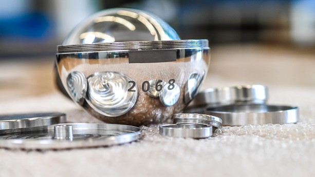 Die Zeitkapsel wurde heute (4. September) an das DLR-Raumfahrtmanagement in Bonn übergeben. Dort haben die Kolleginnen und Kollegen, die innerhalb des DLR die Projektleitung innehaben, ihre Büros. Sie nehmen die Alu-Kugel jetzt mit zur ESA, genauer zum ESA-Zentrum ESTEC in den Niederlanden.