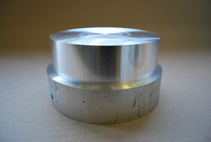 Nein, das soll kein Aluhut werden. Sondern eine Alukugel. Genauer gesagt: zwei Halbkugeln, beide hohl, mit einer nur wenige Millimeter dünnen Wand. Warum ausgerechnet Aluminium? Weil die Zeitkapsel möglichst leicht sein muss. Und da ist Aluminium unter allen Metallen (und etwas anderes scheidet aus) der beste Werkstoff. Das Bild zeigt den Aluminiumblock, aus dem die Halbkugeln von unseren Azubis gefertigt wurden.