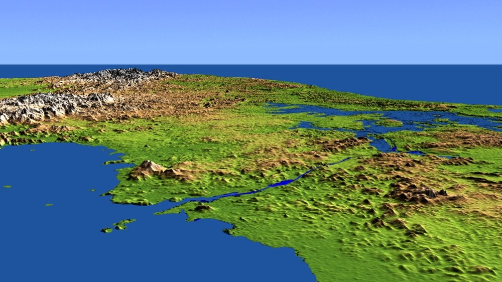 Die digitalen Daten ließen sich später zu dreidimensionalen Bildern verarbeiten – hier zwei Beispiele: erstens das Land Panama in Mittelamerika mit dem Panamakanal (siehe Bild oben auf dieser Seite) und zweitens der höchste Berg Afrikas, der Kilimandscharo in Tansania.