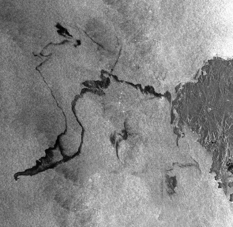 Das Echo des Radarsignals sieht dabei je nach Art der Oberfläche anders aus. Ein Beispiel: Das Meer ist meist relativ wellig, während ein Ölteppich, der nach einem Schiffsunglück auf dem Wasser schwimmt, eher glatt ist. Daher wirft die raue Wasseroberfläche die Radarsignale anders zurück als das glatte Öl. Das Meer erscheint deshalb im Bild hell, das Öl dunkel. So können Radarsatelliten Wasserverschmutzungen schnell erkennen.