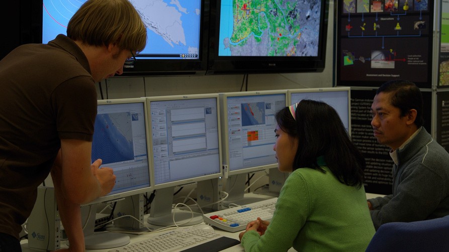 Am 26. Dezember 2004 ereignete sich auf dem Grund des Indischen Ozeans ein Seebeben. Das ist in dieser Region der Erde nicht ungewöhnlich. Doch diesmal waren die Erschütterungen so gewaltig, dass sie eine riesige Flutwelle auslösten: einen Tsunami. Schon wenig später traf die „Monster-Welle“ auf die nahegelegene Küste der indonesischen Insel Sumatra – und in den nächsten Stunden überschwemmte sie auch die Strände vieler anderer Länder: von Thailand bis Indien und sogar bis ans ferne afrikanische Festland. Über 200.000 Menschen starben bei dieser Naturkatastrophe. In Indonesien, das von diesem Tsunami am schwersten betroffen worden war, hat man inzwischen ein Frühwarnsystem errichtet – mit Unterstützung des DLR und anderer Einrichtungen wie dem GeoForschungsZentrum aus Potsdam.