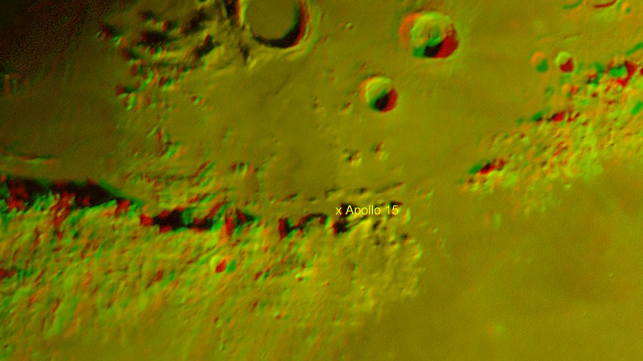 Das Kreuz zeigt die Landestelle von Apollo 15.