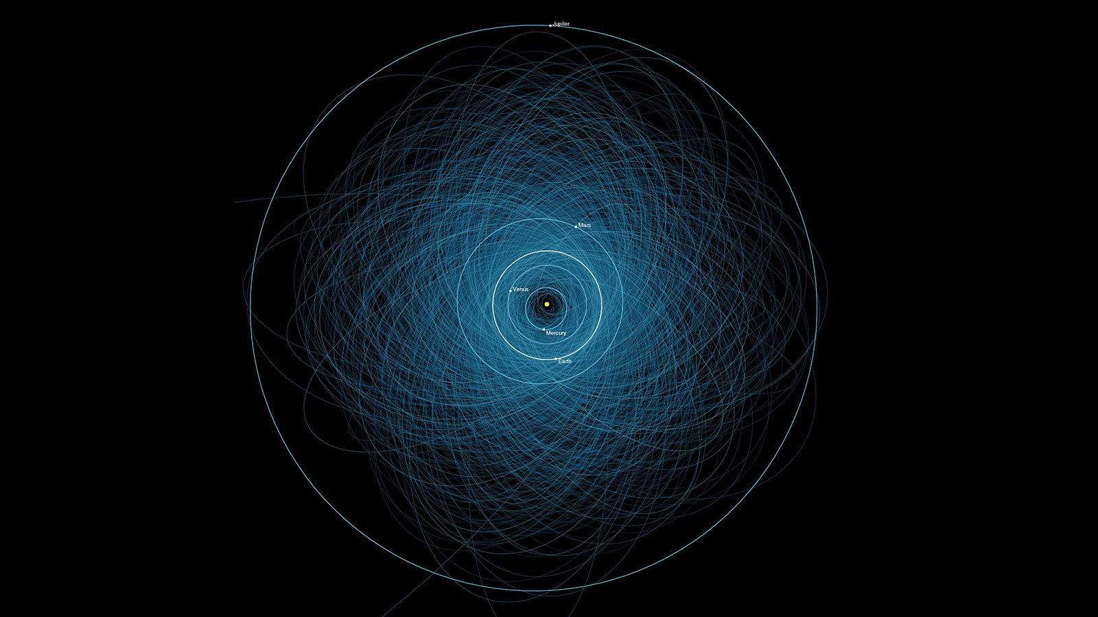 Bisher wurden über 10.000 NEOs entdeckt, jeden Monat kommen 70 weitere hinzu. „NEO“ steht dabei für Near Earth Objects – so nennt man alle Himmelskörper, die sich der Erde nähern. Die meisten davon sausen in sicherer Entfernung an uns vorbei. Manche kommen uns aber auch so nah wie der Mond – oder sogar noch näher! Eine NASA-Datenbank gibt dazu täglich den aktuellen Überblick. Die Entfernung wird dabei in einer Spalte im Vergleich zur Distanz von Erde und Mond (Lunar Distance) angegeben, wobei eine LD rund 400.000 Kilometern entspricht.