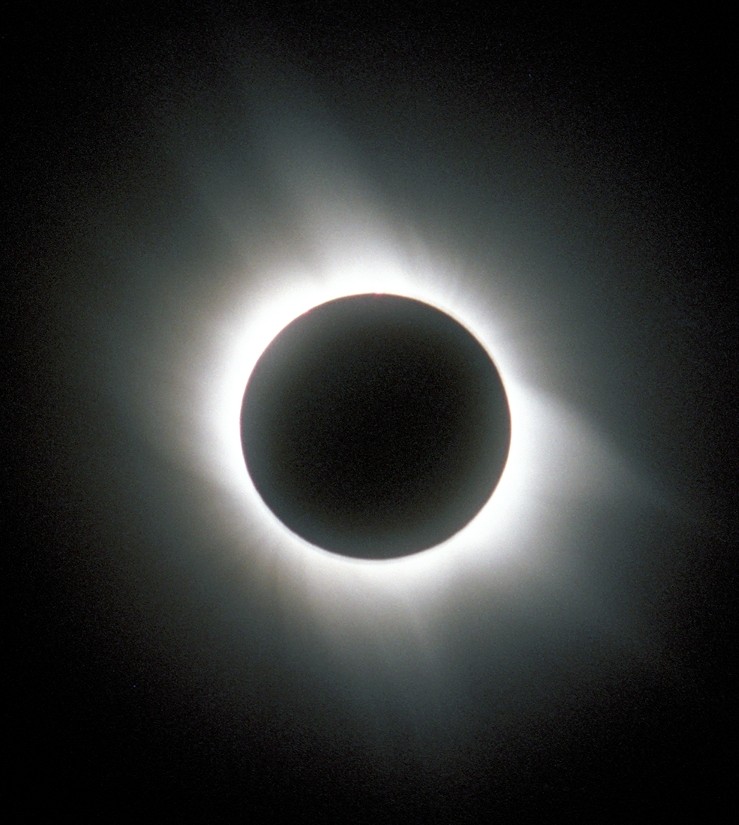 Die äußerste Schicht der Sonnenatmosphäre, die Korona, ist nur bei einer totalen Sonnenfinsternis mit dem bloßen Auge sichtbar. Dann ist das Licht der Photosphäre durch den Mond vollständig abgedeckt. Die Korona ist ein über eine Million Grad Celsius heißer „Strahlenkranz“ und hat – abhängig von der jeweiligen Sonnenaktivität – meist eine asymmetrische Form.