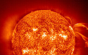 Allerdings erscheint uns die Sonne als leuchtende Kugel mit einem scharfen Rand. Ursache hierfür ist, dass das Sonnenlicht, das wir normalerweise ohne Hilfsmittel sehen, aus einer relativ dünnen Schicht stammt. Diese sogenannte Photosphäre ist nur wenige Hundert Kilometer dick. Es macht also Sinn, von einer sichtbaren Oberfläche der Sonne zu sprechen.
