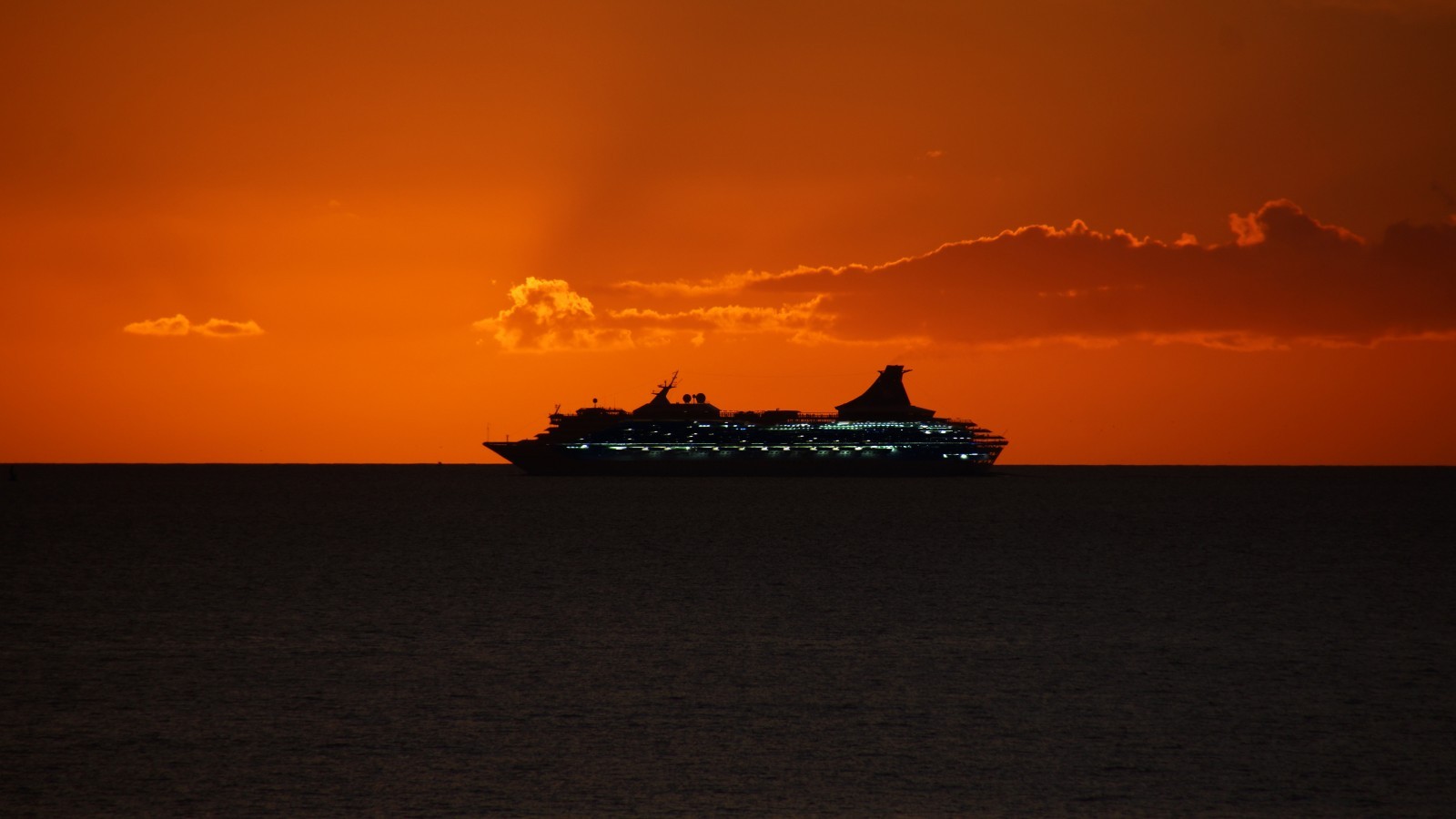 Passagierschiff in Abenddämmerung
