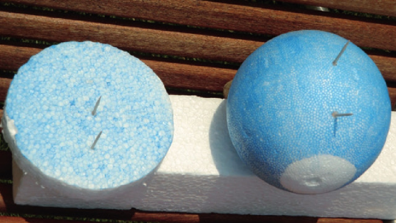 Eine Scheibe und eine Kugel aus Styropor plus ein paar Zahnstocher und eine Taschenlampe: Das ist alles, was du für das Experiment brauchst.