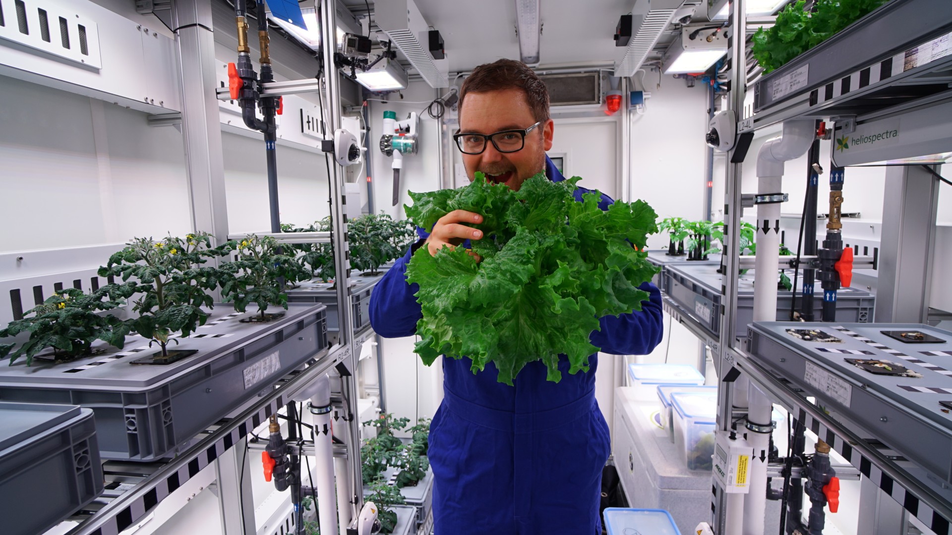 Unser DLR-Mitarbeiter Paul Zabel freut sich über den Salat, den er in einem speziellen Gewächshaus angebaut hat – und zwar in der Antarktis. Dort testete er bei einem Forschungsaufenthalt ein Verfahren, das auch Astronautinnen und Astronauten mit frischer Nahrung versorgen könnte. Ein ganz einfaches Experiment, mit dem du das so ähnlich auch zu Hause ausprobieren kannst, haben wir hier beschrieben.