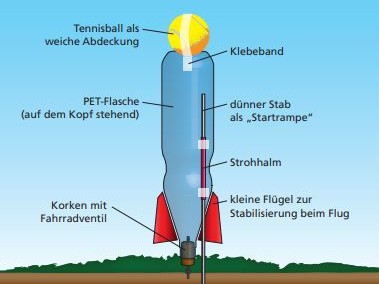 Klar, aus Raketentriebwerken fallen keine Medizinbälle raus. Aber das Experiment sollte dir ja auch nur zeigen: Mehr Masse sorgt für mehr Rückstoß. Das erkennt man auch gut bei einer Mini-Rakete, die ihr ebenfalls in der Schule selbst bauen und starten lassen könnt.