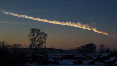 Neben den kleinen Staubkörnchen, die Sternschnuppen erzeugen, tauchen ab und zu auch größere Brocken in unsere Erdatmosphäre ein. Dann bleibt es nicht bei einer kleinen Sternschnuppe, sondern es kommt zu einer grell leuchtenden Feuerkugel. Sie ist meistens ein paar Sekunden lang sichtbar – und das ist dann echt „boah“ und „wow“! Das Objekt, das eine Feuerkugel auslöst, kann etwa so groß wie ein Tischtennisball oder viel größer sein. Manchmal verglüht es vollständig in der Atmosphäre, manchmal kommt ein Rest auf dem Erdboden an. Dabei hängt viel von der Größe und auch vom Material ab: Besteht es aus Metall, ist es sehr hart und fest und knallt als ganzes Stück auf den Boden. Handelt es sich um Gestein, ist es nicht ganz so fest und zerplatzt oft schon unterwegs in mehrere Teile. Das kann zu einer Druckwelle führen, die große Zerstörungen anrichtet. Am 30. Juni 1908 sind auf diese Weise in Sibirien Tausende Bäume wie Streichhölzer umgeknickt. Das war das sogenannte Tunguska-Ereignis – benannt nach einem Fluss in der Nähe. Und am 15. Februar 2013 ist über der russischen Stadt Tscheljabinsk ein Brocken aus dem All explodiert: Viele Fensterscheiben zerbrachen durch die Wucht dieser Explosion und etwa tausend Menschen wurden durch die Glassplitter verletzt. Dieses Video zeigt, wie der etwa 19 Meter große Himmelskörper durch die Atmosphäre rast.