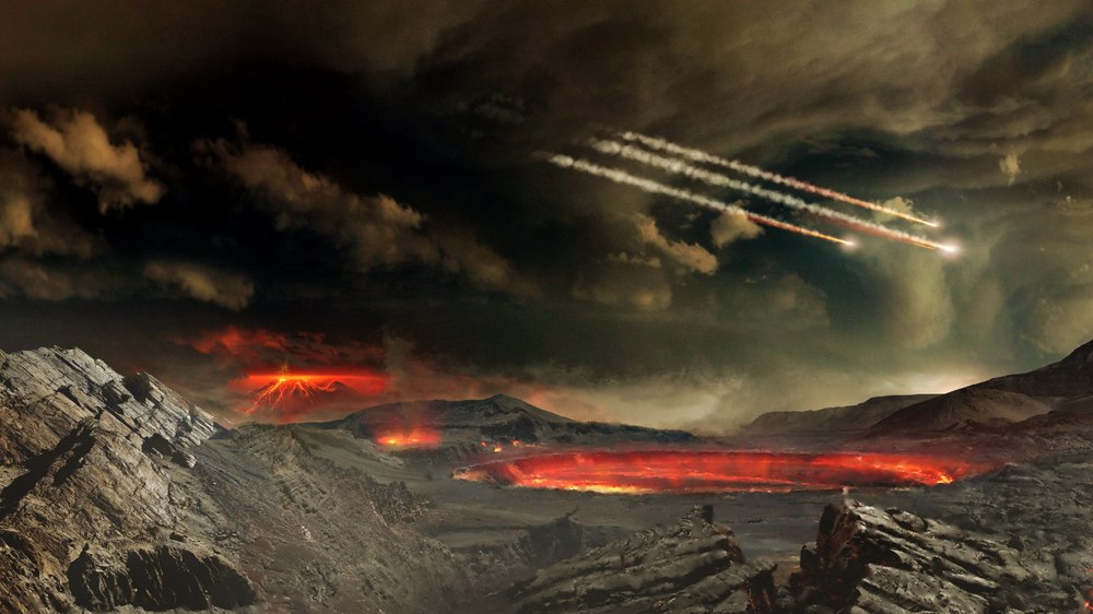 Tja, schon irgendwie verrückt: Da verraten uns kleine Fundstücke, die aus dem All auf die Erde gefallen sind, wie vor mehreren Milliarden Jahren unser Planet entstanden ist. Von welchen Himmelskörpern diese außerirdischen Materieklumpen stammen, weiß man auch. Als sich die Sonne und die Planeten gebildet hatten, blieb ein Rest an Materie aus der kosmischen Wolke übrig. Zu wenig für große Planeten, aber gerade genug, dass sich daraus kleinere Himmelskörper formen konnten, die wir heute als Asteroiden und Kometen bezeichnen. Zur Erklärung: Asteroiden bestehen aus Gestein und Metall, Kometen aus Staub und Eis, weshalb sie auch „schmutzige Schneebälle“ genannt werden. Anfangs sausten sie kreuz und quer durchs Sonnensystem. Immer wieder kam es zu Zusammenstößen – und die Bruchstücke, die dabei entstanden, krachten in dem ganzen Durcheinander auf die jungen Planeten und so auch andauernd auf die Erde. Erst allmählich beruhigte sich die Lage und die Einschläge wurden seltener.