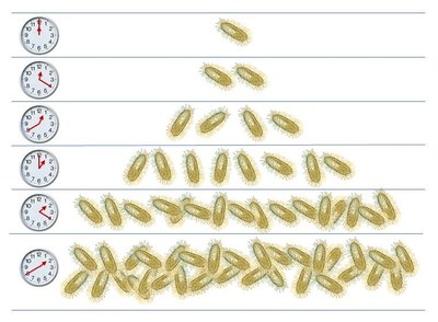 Dieses rasante exponentielle Wachstum trifft man in vielen Bereichen an. Nehmen wir mal Bakterien. Sie vermehren sich durch Zellteilung. Aus einem Bakterium werden zwei. Diese teilen sich nach dem Wachstum wieder, verdoppeln sich also jedes Mal. Wie viele Bakterien nach dem 5. Teilungsschritt entstanden sind, siehst du hier: