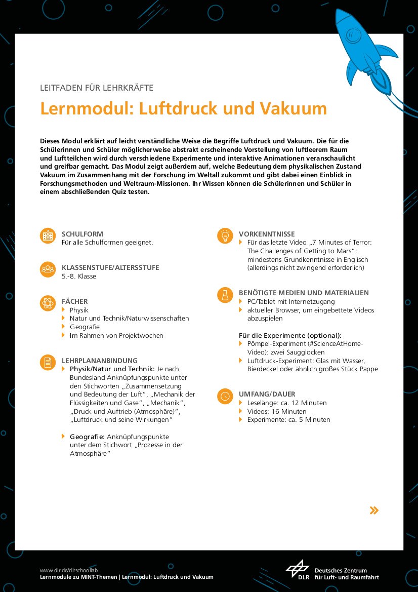 Leitfaden für Lehrkräfte Vakuum