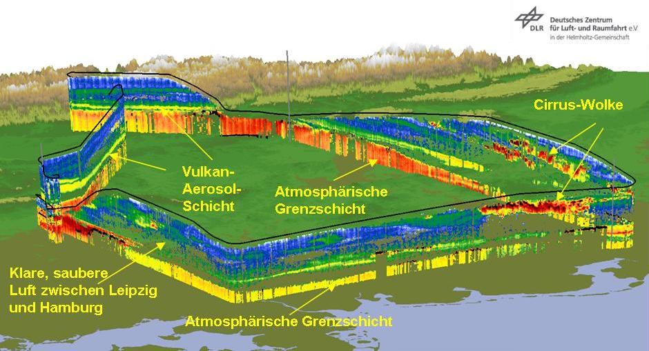 Das LIDAR (Light Detection And Ranging)-Instrument (siehe Abbildung) zeigte Vulkanaschewolkenstrukturen aus vertikalen Schichten. Diese Schichten lagen auf der Flugstrecke in sehr unterschiedlichen Höhen. Die Aerosolmessungen deuten darauf hin, dass in schon gealterte Vulkanasche-Wolken geflogen wurde. Zeitweilig war während des Fluges eine bräunliche Wolkenfärbung zu sehen. Diese Messungen erlauben einen Vergleich mit in Deutschland an mehreren Stellen durchgeführten bodengestützten Messungen.