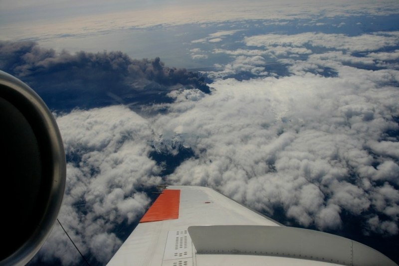 Triebwerk vor Aschewolke der Eyjafjallajökull Eruption 2010.