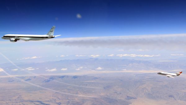Das DLR-Forschungsflugzeug Falcon flog im Mai 2014, ausgestattet mit modernster Instrumentierung und besetzt mit einer Crew von Spezialisten des DLR-Instituts für Physik der Atmosphäre und des DLR-Forschungsflugbetriebs in die USA. Dort führten die Forscher Messungen im Abgasstrahl im Abstand von 30 bis 150 Metern zum NASA-Forschungsflugzeugs DC-8 durch. Die CFM56-Triebwerke der DC-8 wurden dabei zum Vergleich abwechselnd mit regulärem Jet A1-Flugtreibstoff und einer 1:1-Mischung aus Jet A1 und dem Biotreibstoff HEFA (Hydroprocessed Esters and Fatty Acids) betrieben. HEFA wird aus dem Öl von Leindotter-Pflanzen gewonnen. Zuvor durchgeführte Messungen hatten nur Aufschluss über die Rußentstehung bei Biotreibstoffen am Boden geliefert, wobei im Flug andere Umgebungsbedingungen herrschen.