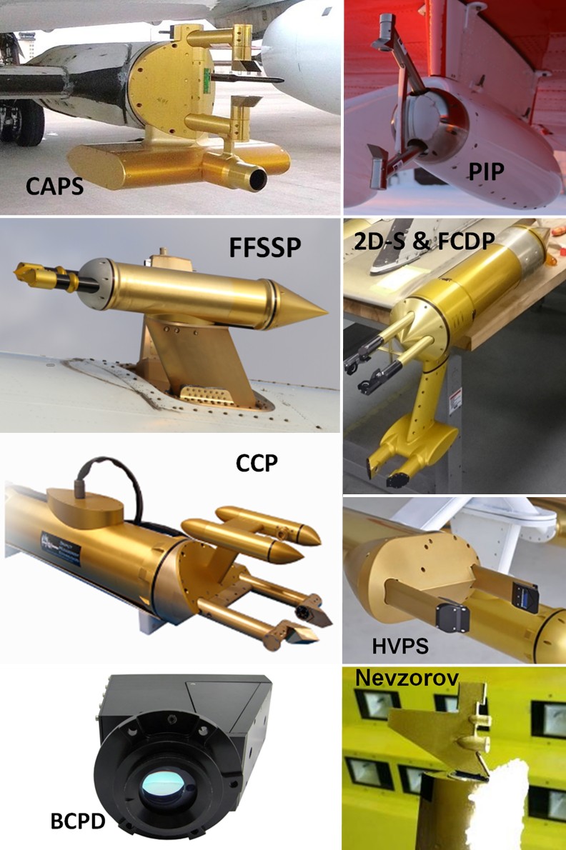 Das Institut für Physik der Atmosphäre betreibt eine Vielzahl an verschiedenen Sensoren zur Detektion und Charakterisierung von Wolkenpartikeln auf den Forschungsflugzeugen HALO und Falcon. Die Instrumente werden unter dem Flügel der Flugzeuge oder direkt am Rumpf angebracht, um so flüssige und eisförmige Partikel ungestört in der Atmosphäre messen zu können. Neben den Flugzeugmessungen werden die Sonden auch zur Windtunnelcharakterisierung genutzt.