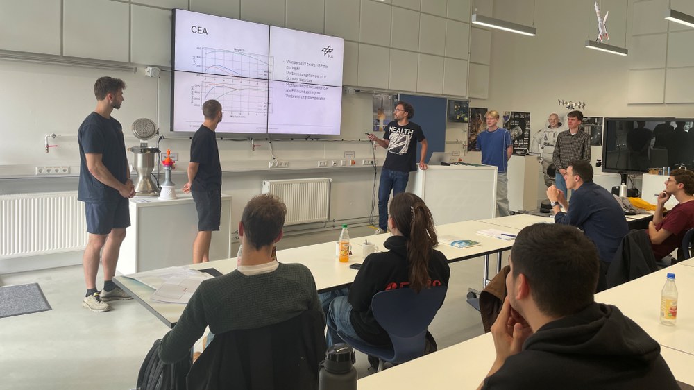 Referenten von der Deutschen Raumfahrtagentur im DLR, der ArianeGroup Lampoldshausen sowie der Europäischen Weltraumorganisation ESA bereicherten das Vortragsprogramm. Zu Gast in diesem Jahr waren außerdem Vertreterinnen und Vertreter die DLR-Ausgründungen InSpacePropulsion Technologies und HyImpulse Technologies sowie die Studierendengruppe HyEnd der Universität Stuttgart. Damit erhielten die Studierenden einen tiefen Einblick hinter die Kulissen und konnten gezielt Fragen an die Start-Ups platzieren.