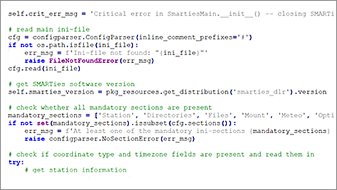 Für die von uns betriebenen Teleskopstationen entwickeln wir die benötigte Software selbst. Dies umfasst die Steuerung und Überwachung der Stationen (SMARTware), Beauftragung der Teleskope und Steuerung der Instrumente (SMARTies) sowie die anschließende Datenreduktion von Bildern zu Tracklets (SMARTpro).