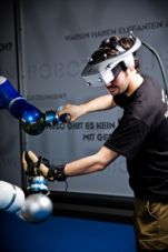 In telepresence, the human operator will immerse into a remote environment and control a tele-operated device on a motion / force level. By means of a multimodal human machine interface (HMI) the human perceives and acts as in the real world.