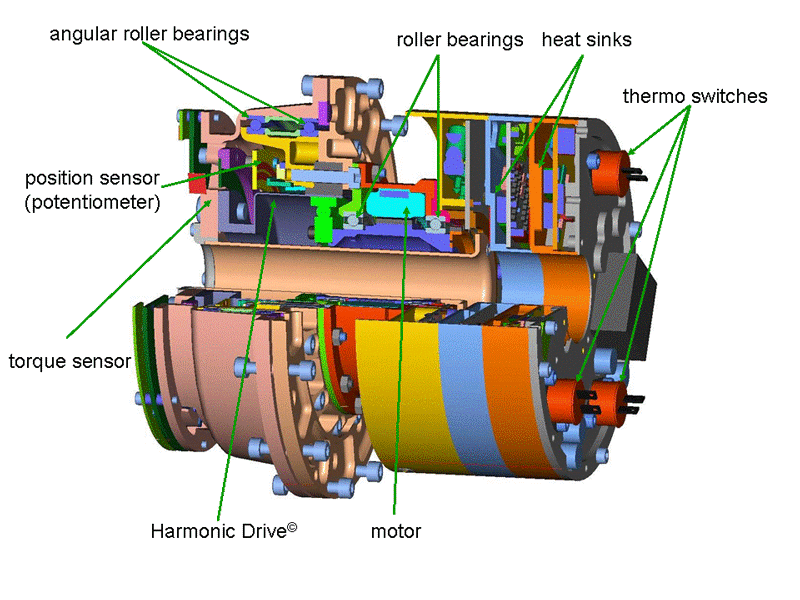 - Jedes Gelenk ist über SERCOS mit dem Hauptrechner (OBC) gekoppelt. Der Vorteil der Punkt-zu-Punkt-Struktur besteht darin, dass selbst bei einem Ausfall der Elektronik eines Gelenks das verbleibende Gelenk noch funktionsfähig ist.