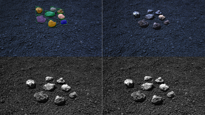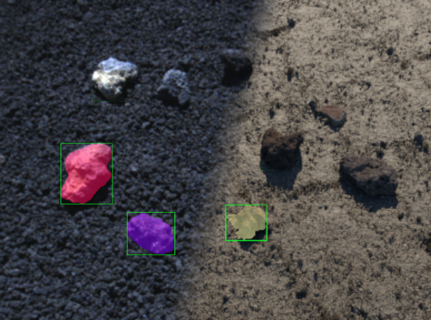 Der Real-Synthetic Rock Instance Segmentation Datensatz (ReSyRIS) ermöglicht Training und Evaluierung von Methoden zur Detektion, semantischen Segmentierung und Instanz-Segmentierung von Steinen in (quasi-) extra-terrestrischen Umgebungen. Er besteht aus einem Set aus realen Bildern von Steinen auf Mond-ähnlicher Oberfläche, und einer präzise imitierten synthetischen Variante. Beide Versionen beinhalten pixel-weise annotierte Steinmasken. Die Assets zum Erstellen des synthetischen Testsets (3D Steinmodelle und Bodentextur) ermöglichen die Generierung von Trainingsdaten in unterschiedlichsten Spezifikationen.