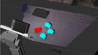 Augmented Autoencoders (AAEs) sind ein am Institut entwickelter Ansatz, um neuronale Netze zur Objekt-Lageschätzung mit synthetischen gerenderten Bildern von 3D-Modellen zu trainieren. Er erlaubt das Lernen komplexer Features zur Lageschätzung ohne das aufwendige Annotieren von Bildern mit Objektposen. Durch eine Domain-Randomization-Strategie während des Trainings wird die Übertragbarkeit auf echte Sensordaten sichergestellt. Im Gegensatz zu vielen anderen Ansätzen wird kein direktes Mapping von Bildern zu Posen gelernt, wodurch der Ansatz mit Objektsymmetrien umgehen kann.