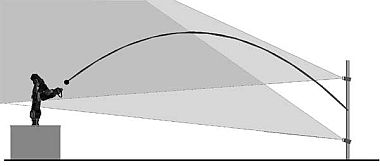 In our general setting, the ball is in the air for about 0.8s to 1s, covering a distance of about 5m.This is just long enough for the robot to reach a typical catch point. Therefore it is essential to provide an early prediction of the trajectory to quickly command the catch position to the robot. As the ball is tracked for a longer time, the prediction becomes increasingly precise and the robots destination is modified. Therefore we put a stereo camera system with a quite large baseline of ca. 1m near the thrower and get this way a good prediction of the position and velocity of the ball after the first two frames from the cameras.
