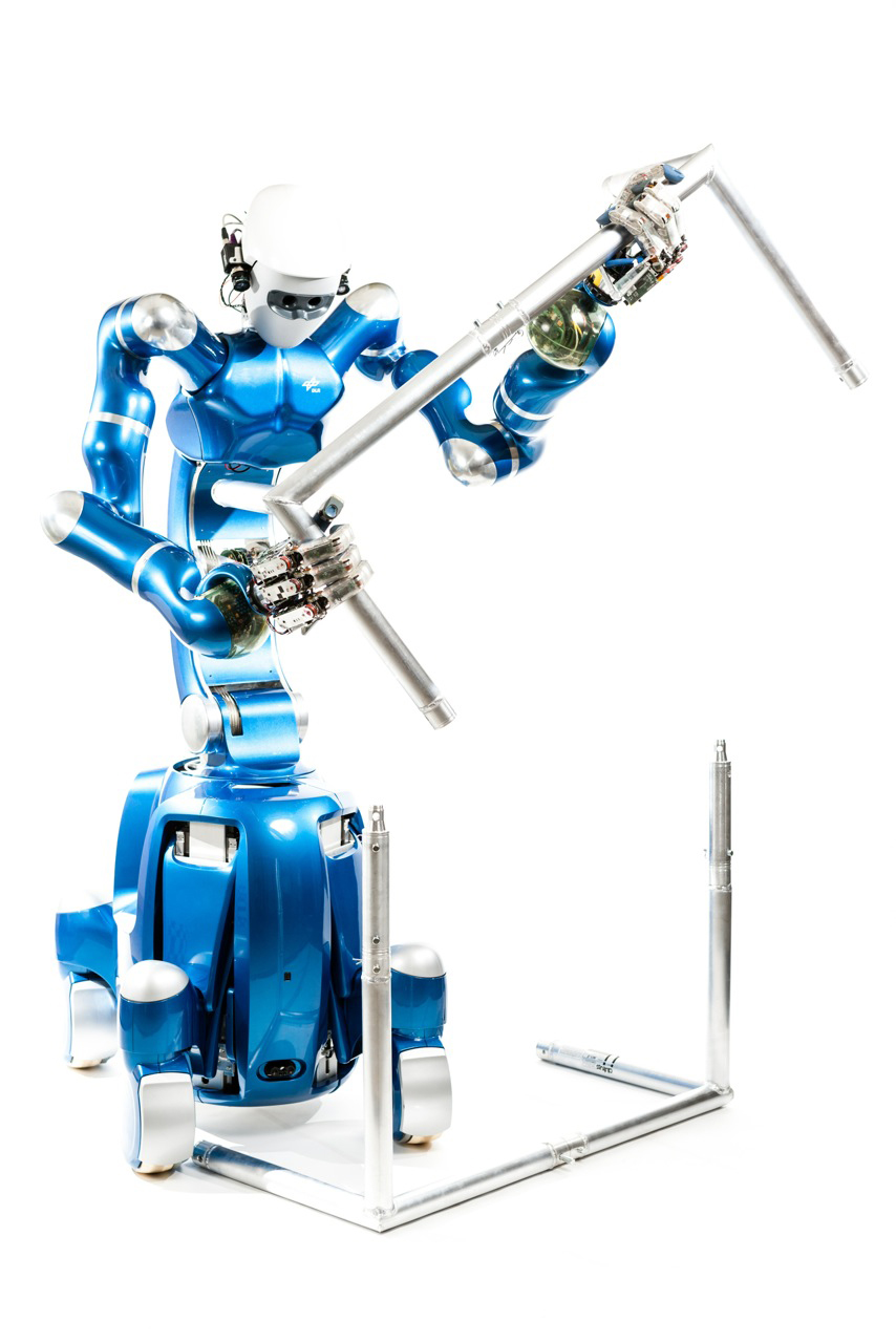Der humanoide Roboter Agile Justin ist eine Forschungsplattform für lernende künstlicher Intelligenz (KI) im Bereich feinfühliger Manipulation. Zukünftige Anwendungsbeispiele für das System sind insbesondere der Service-Roboter für daheim oder die Unterstützung von Astronauten im Weltraum.