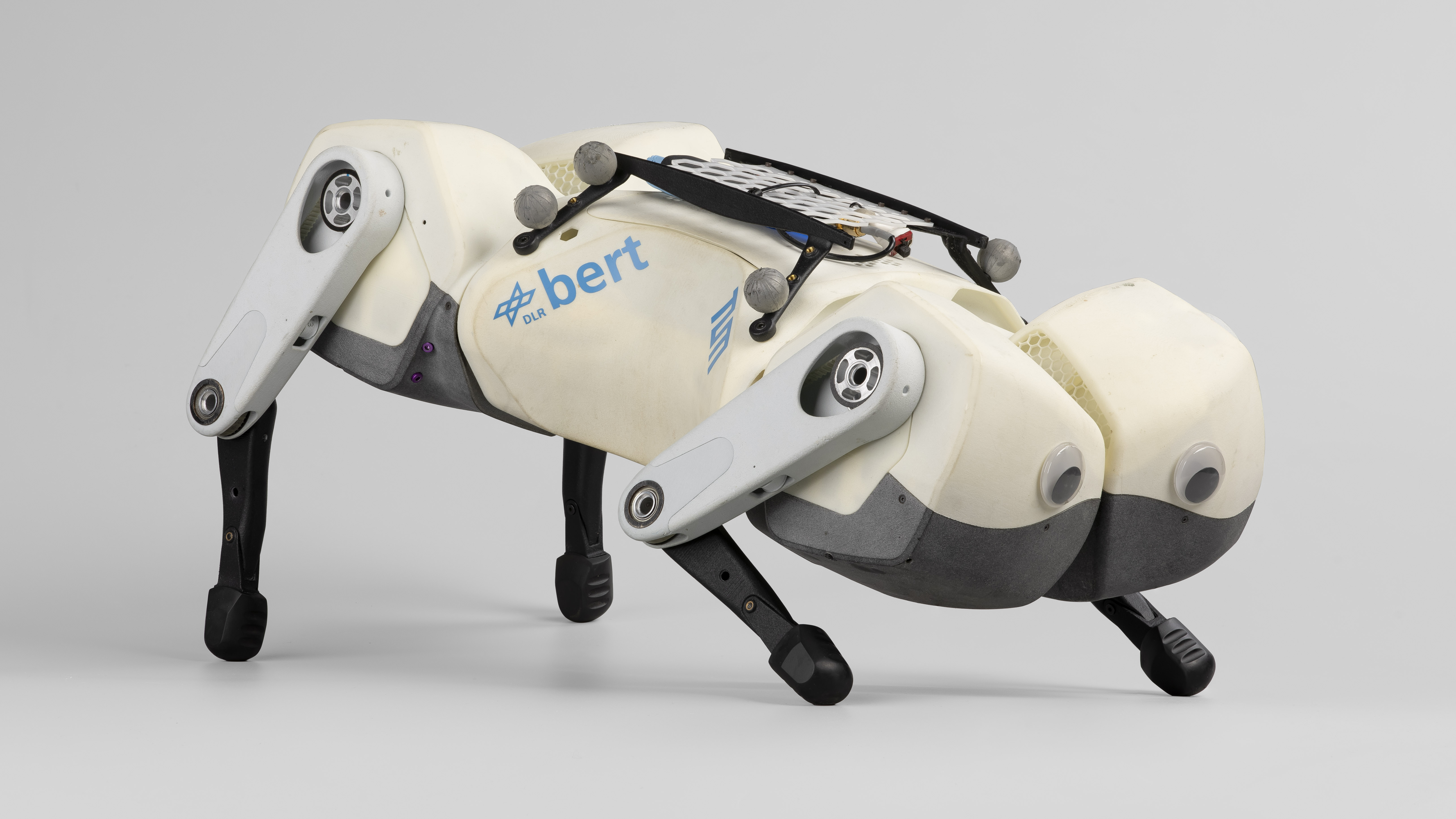 Berts sind eine Familie von elastischen Vierbeinern, die ursprünglich entwickelt wurden, um die Ausnutzung der Eigenschwingungen mechanischer Systeme zu untersuchen. Ziel ist es, eine energieeffiziente Fortbewegung zu entwickeln, die für die Erforschung des Weltraums entscheidend ist, wo die Lebensdauer der Batterien begrenzt ist. Das Konzept folgt einer Rapid-Prototyping-Philosophie, die zu mehreren Generationen mit zunehmender Leistungsfähigkeit und Robustheit führt. Dank ihres nachgiebigen Designs und ihrer leichten Bauweise ermöglichen die Berts die direkte Anwendung von Verstärkungslernen auf der Hardware, wodurch Probleme bei der Übertragung von der Simulation in die Realität vermieden werden. Durch ihre federnde Bewegung und ihr ansprechendes Äußeres sind die Berts für Kinder und Erwachsene gleichermaßen interessant.