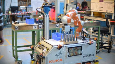 Als Teil des Future Manufacturing des DLR, zielt AIMM auf Anwendungen ab, bei denen autonome mobile Manipulation der Schlüssel zum Erfolg ist. Mit seiner mobilen Plattform und seinem integrierten Manipulator wurde AIMM um einen Werkzeugwechsler, eine Schwenk-Neige-Einheit und mehrere Sensoren erweitert, die eine nahtlose Wahrnehmung der Umgebung und der zu manipulierenden Objekte ermöglichen. Dank dieser Vielseitigkeit kann AIMM zwischen verschiedenen Aufgaben wechseln, wodurch der Bedarf an speziellen Robotern für einzelne Aufgabe entfällt. Damit eröffnet AIMM neue Anwendungsmöglichkeiten und bewältigt gleichzeitig technologischen Herausforderungen, die mit einem komplexen System verbunden sind: AIMM operiert in teilweise unbekannten Umgebungen und kann Änderungen in der Aufgabe erkennen und darauf reagieren. Der Roboter verfügt über ein hohes Maß an Autonomie, um sich in neuen Umgebungen zurechtzufinden und den Benutzer aktiv bei der Durchführung neuer Aufgaben zu unterstützen. Fortschritte in der Forschung für Wahrnehmung, Logik und Manipulation, treiben die Vision von AIMM voran: ein vollständig autonomes Robotersystem. Dabei bleibt AIMM intuitiv bedienbar, so dass Flexibilität und Aufgabenadaption problemlos möglich sind.