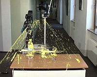 Wir nutzen das 3-Kamera-System Digiclops von Point Grey Research für die Stereobildverarbeitung mit einem senk- und waagerechten Stereopaar (Grundlinie 10 cm). Jedes Bild hat eine Auflösung von 640 · 480 Pixel. Die von uns untersuchten Objekte – Flaschen und Gläser – sind eine Herausforderung für das Sichtsystem. Das liegt daran, dass die visuellen Daten von transparenten Objekten im Allgemeinen mehrdeutiger sind als die von Objekten mit undurchsichtiger, farbiger oder strukturierter Oberfläche. Daher tragen hauptsächlich Rillen bzw. Falten an der Oberfläche und Ungleichmäßigkeiten in der Tiefe zur Stereobildverarbeitung bei. Daraus ergibt sich dann eine eher spärliche Darstellung der Szene mit ziemlich wenigen 3D-Datenpunkten, mit denen die Objekte auf dem Tisch umrissen werden.