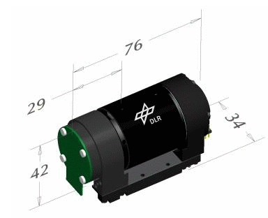 Das DLR-Laserdiodenmodul im Abtastkopf erzeugt einen Laserstrahl mit einer Wellenlänge von 670 nm. Während gewerbliche Module Abweichungen von bis zu 7° zwischen Laserstrahl und Gehäuseachse aufweisen, kann das DLR-Modul sehr präzise justiert werden. Bei einem Durchmesser von 9 mm und einer Länge von 11,5 mm erzeugt es einen Laserstrahl mit 1,2 mm Durchmesser bei 2 mrad Strahlstreuung. Die Abweichung des Laserstrahls von der Modulgehäuseachse wird auf weit unterhalb 0,1° reduziert. Die galvanisch getrennte Laserdiode ist thermisch gut mit dem Modulgehäuse gekoppelt. Der Abtastkopf dient gleichzeitig als Kühlkörper und erhöht so die Betriebszeit des Lasers. Das PSD-Signal wird durch die Elektronik im Abtastkopf verarbeitet. Bei der Entfernungsmessung sind Auflösungen bis 12 Bit erreichbar, wobei die Intensität des erfassten Lichtpunkts über ein 4-Bit-Signal (logarithmisch) übermittelt wird.