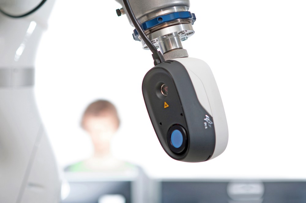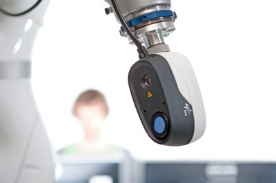 Der Laserscanner basiert auf einem extrem kleinen MEMS Scankopf, was eine kompakte, leichte und hochintegrierte Bauform für Hand-Auge Applikationen erlaubt. Besondere Merkmale wie variable Reichweite und Qualitätsbewertung der Messwerte erhöht die Robustheit und Vielseitigkeit.