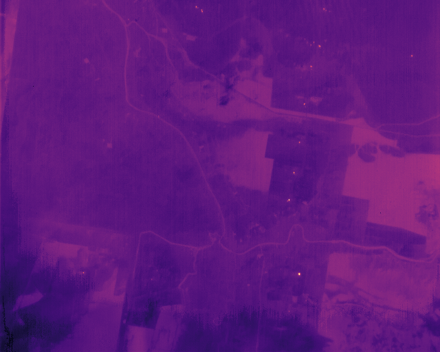 Wärmesignaturen von Gasfackeln auf einem Feld von Ölquellen