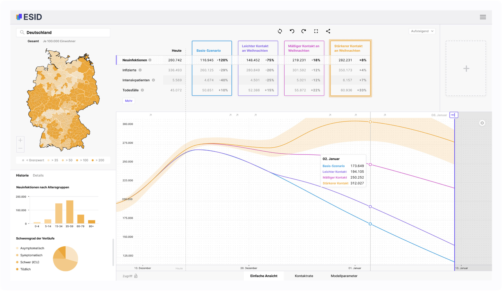 Die Plattform ESID unterstützt die Gesundheitsämter bei der Überwachung und Untersuchung von lokalen Ausbrüchen, bei der Bewertung der regionalen und überregionalen Infektionsdynamik oder Infektionssituation sowie dem Einsatz von passgenauen Maßnahmen.