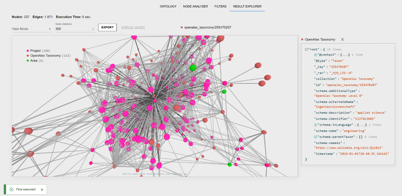 A knowledge graph of projects linked with appropriate terms from a taxonomy and the corresponding DLR departments.