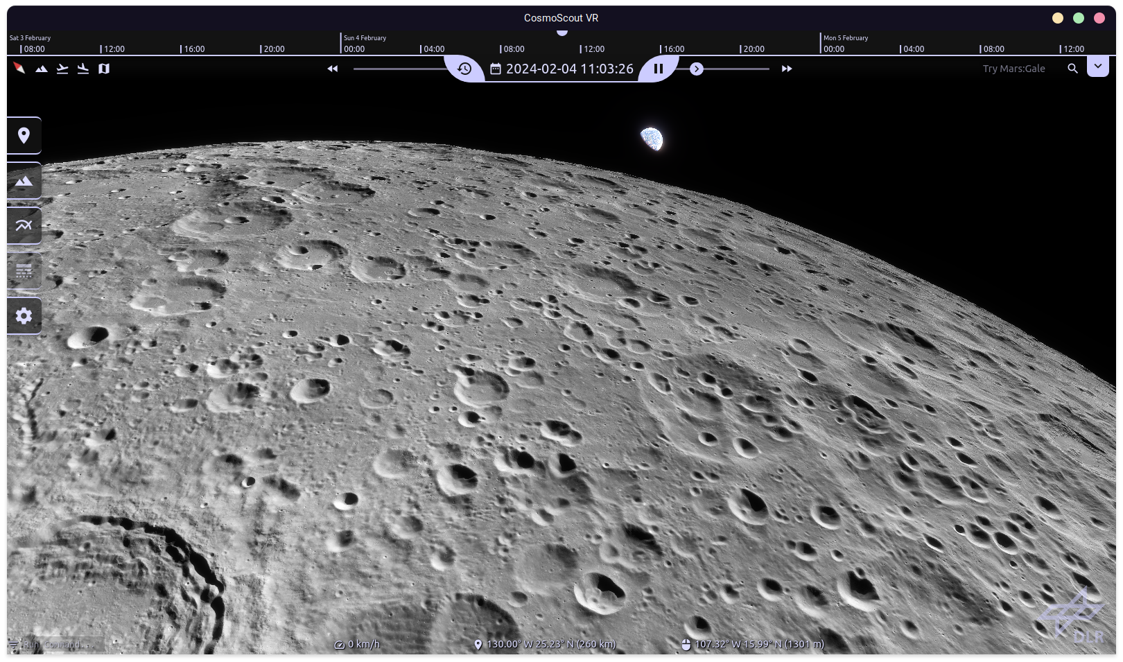 Mondoberfläche in CosmoScout VR mit Daten des Lunar Reconnaissance Orbiters