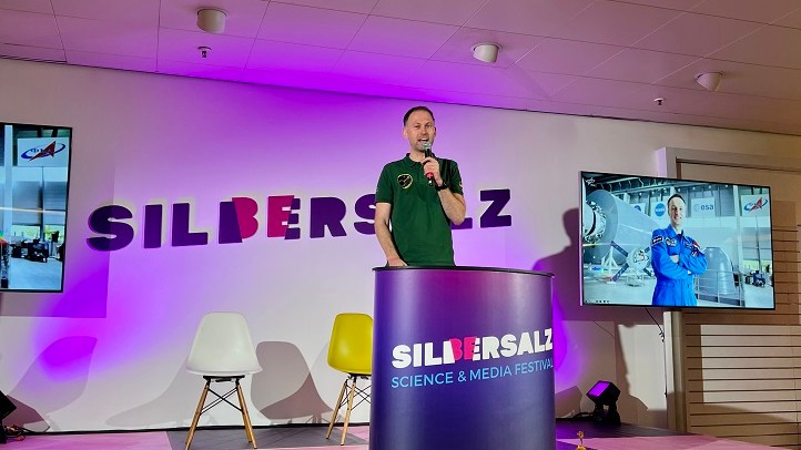 Zur Eröffnung wurde das DLR_Weltraum_Kino auf der „Open Stage“ gezeigt. Faszinierende Bilder und spektakuläre Videos standen im Mittelpunkt der gemeinsamen Reise durch das Sonnensystem. Sie führte zunächst zur Internationalen Raumstation ISS, wo die verrückte Welt der Schwerelosigkeit im Fokus stand. Weiter ging es zum Mond, wo die schönsten Bilder der Apollo-Missionen gezeigt wurden. Auch der Mars war eine Station auf der spannenden Gedankenreise ins All.