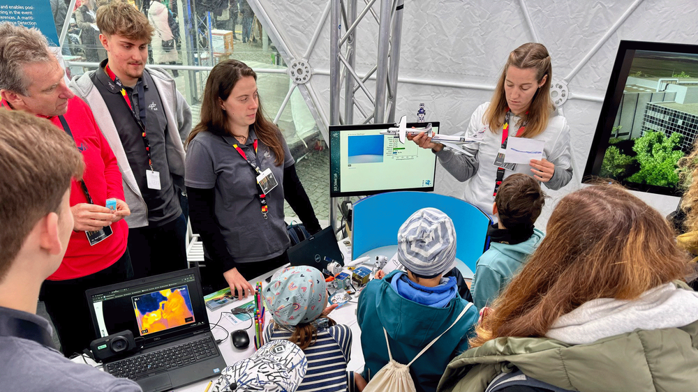 Neben der DLR-Nachwuchsförderung waren auch Wissenschaftlerinnen und Wissenschaftler des DLR-Standortes Neustrelitz im Forschungszelt vertreten und präsentierten aktuelle Projekte aus den Bereichen Erdbeobachtung, Satellitennavigation und Weltraumwetter. So erhielten Gäste spannende Einblicke in die vielfältigen Forschungsaktivitäten des DLR in Mecklenburg-Vorpommern und darüber hinaus.