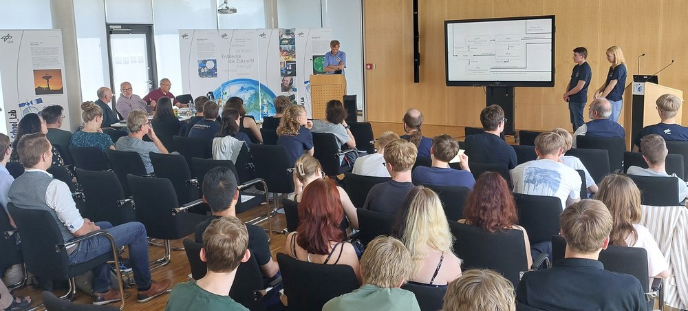 Am 25. Juni 2024 stellten die Schülerinnen und Schüler schließlich ihre Ergebnisse auf der Abschlussveranstaltung im DLR Neustrelitz einer Jury vor. Dabei begutachteten der deutsche ESA-Astronaut Dr. Gerhard Thiele sowie Dr. Rüdiger Seine vom ESA-Astronautentraining die Jahresarbeiten und führten angeregte Diskussionen mit den Vortragenden. Beide Raumfahrt-Experten waren beeindruckt, wie tief die Jugendlichen in die spezielle Materie eingedrungen waren. In der anschließenden Fragerunde erweiterten die Jugendlichen ihr Wissen zum Thema Weltall und Raumfahrt – und bekundeten ebenso wie die Lehrkräfte voller Begeisterung ihr Interesse, beim nächsten Jahresprojekt gleich wieder mitzumachen.