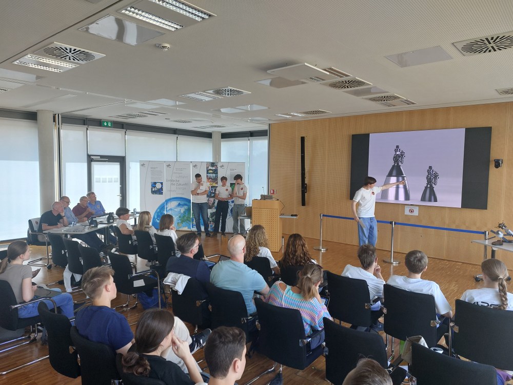 Etwa 50 Jugendliche und Gäste kamen am 4. Juli 2025 zur Abschlussveranstaltung des Schulprojektes „Wir fliegen zum Mars“ zum Deutschen Zentrum für Luft- und Raumfahrt (DLR) nach Neustrelitz. Das Projekt wurde bereits zum dritten Mal vom dortigen DLR_School_Lab ausgeschrieben. Die im Schuljahr 2024/2025 teilnehmenden Schülerinnen und Schüler aus Berlin und Mecklenburg-Vorpommern stellten die Ergebnisse ihrer Arbeiten zum Thema einer Jury von Raumfahrtexperten vor.