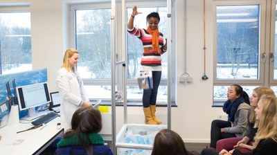 Auch in unserem Schülerlabor können die Schülerinnen und Schüler viele unterschiedliche Experimente durchführen. So lernen sie, wie Schwerelosigkeit auf der Erde hergestellt wird und wie sich Magnete, Wasser, Feuer, Schallwellen und vieles mehr dabei verhalten.