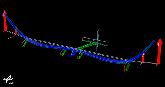 Da ist es gut, wenn man bereits am Prototyp noch auf dem Boden einen speziellen Test durchführen kann: den Standschwingungsversuch. Dabei wird das gesamte Flugzeug auf sein Schwingungsverhalten getestet. Im DLR_School_Lab könnt ihr solch einen Versuch durchführen!