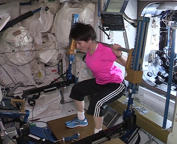Schon seit einigen Jahren stehen darum für die Astronautinnen und Astronauten mindestens zwei Stunden Training täglich auf dem Stundenplan. Einige Trainingsgeräte wie Laufbänder und Fahrradergometer sind den Geräten auf der Erde sehr ähnlich. Andere, wie das ARED im Bild, wurden für die Raumstation völlig neu entwickelt.