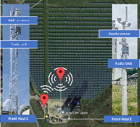 Mobilfunkantennen für das 5G-Campusnetz im Heliostatfeld des Solarturms Jülich.